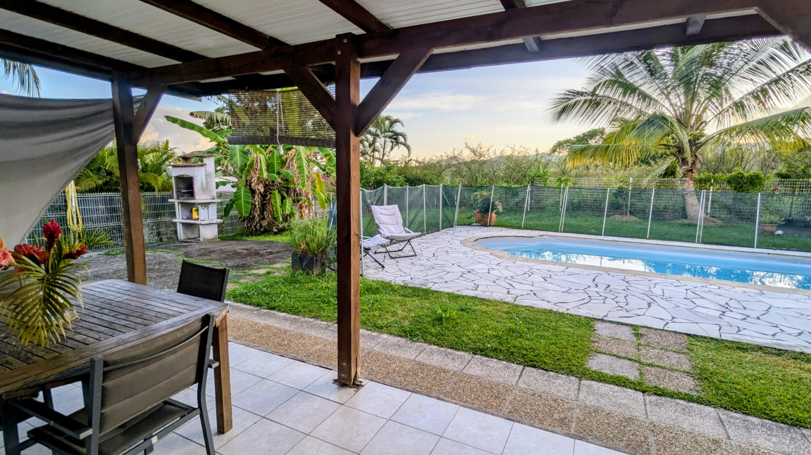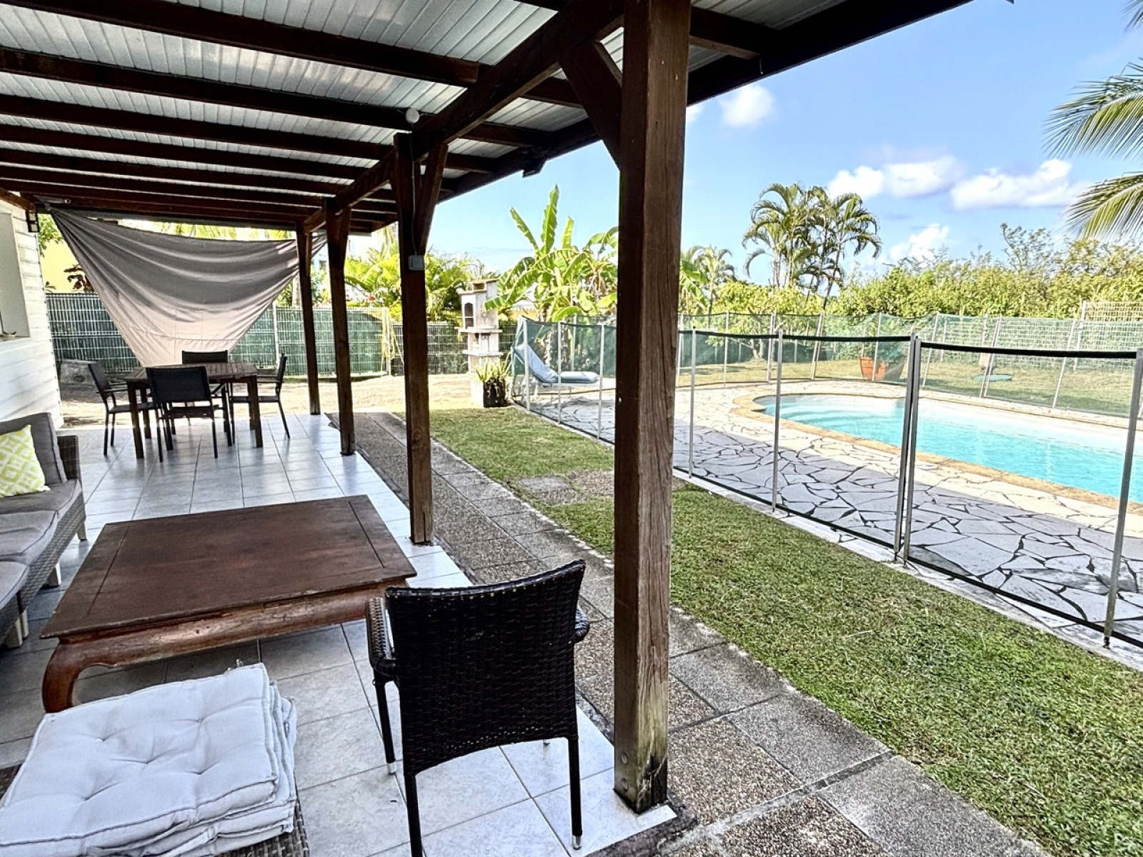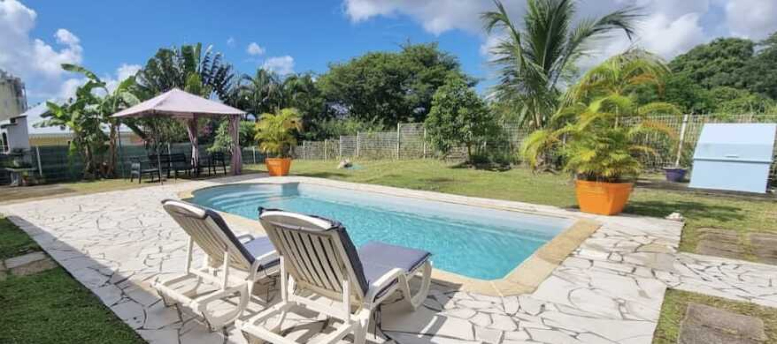 Ensemble immobilier de 2F3 et 1 F2 de plain pied avec piscine